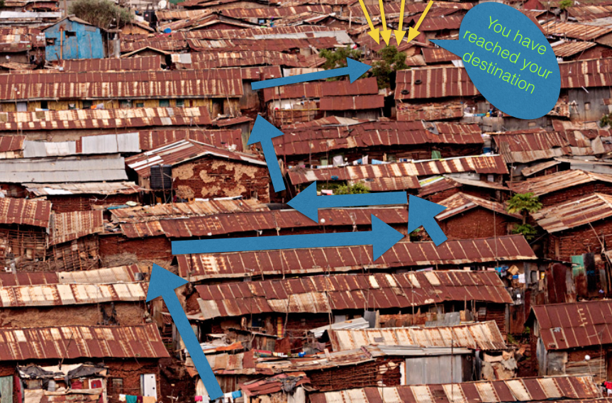 Have you ever been on your way to a job interview, or a friend’s place or even a local bar, and not been able to find your way? Usually you would pick up your phone, type in the address and then follow the arrow to your destination. Sounds pretty simple, but what if the place didn’t have an official address? This is the case in many places in Africa. You could ask the way, and people will certainly try to help you. But, with a lack of knowledge of street names you will be told to “turn right at the blue kiosk, go straight past the grey gate, turn left at ‘May the Lord protect us’ drinking spot, and enter the blue gate, next to the mango tree”. (Or something equally as complicated)
