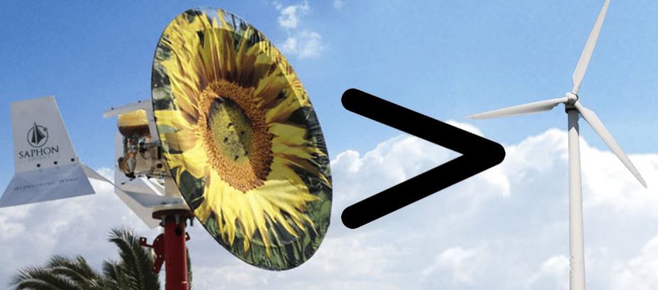 A Tunisian firm, Saphon Energy, have an invented an odd looking bladeless turbine, which they claim to be over twice as efficient as the current wind turbine solutions. After coming through various different versions of the turbine inspired by the sail boat, the current version looks like a wonky satellite dish which moves in a figure of eight when the facing into the wind. This motion, which is rather more ungainly than what we are use to seeing, means that it can make the most of the wind on its surface area. It makes sense! There are huge gaps between the blades of a wind turbine, and much of the wind much just slip through without effecting its movement.